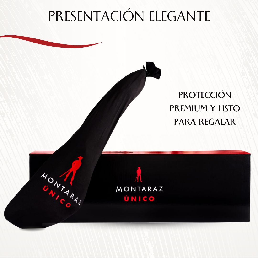 Jamón 50% Raza Ibérica de Cebo de Campo Montaraz, de cerdos criados en libertad en Extremadura y curados en Salamanca, un clima más suave que le otorga un sabor suave y elegante. Jamón 100% natural, sin conservantes ni aditivos, sólo carne y sal.