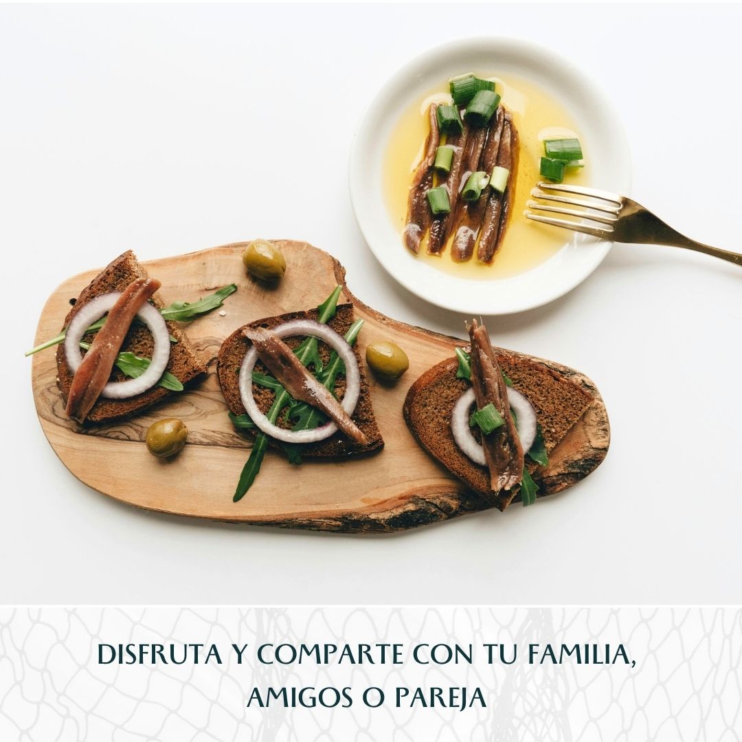 - 🌊 BOQUERONES Y ANCHOAS DEL CANTÁBRICO DE CALIDAD EXTRA – Seleccionados en su mejor temporada de pesca y elaboradas en Santoña de forma artesanal, garantizando un sabor auténtico y una textura suave.