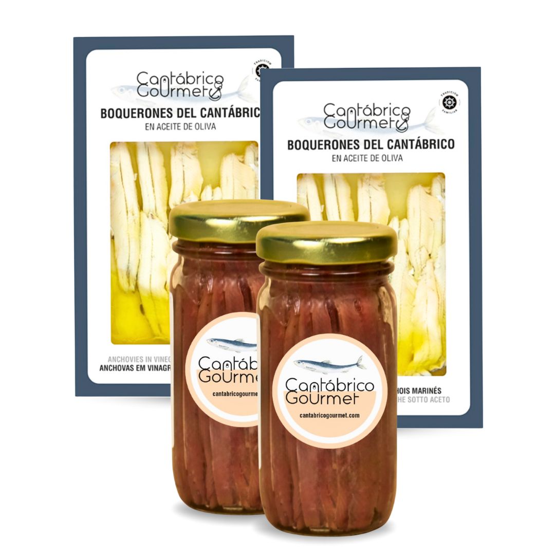 36-46 Filetes Anchoas de Santoña Artesanales Extra (200gr) + 20-24 Boquerones (Bocartes) del Cantábrico en Aceite de Oliva (200 gr) | Packs Gourmet Variados | Elaborado por Casa Santoña