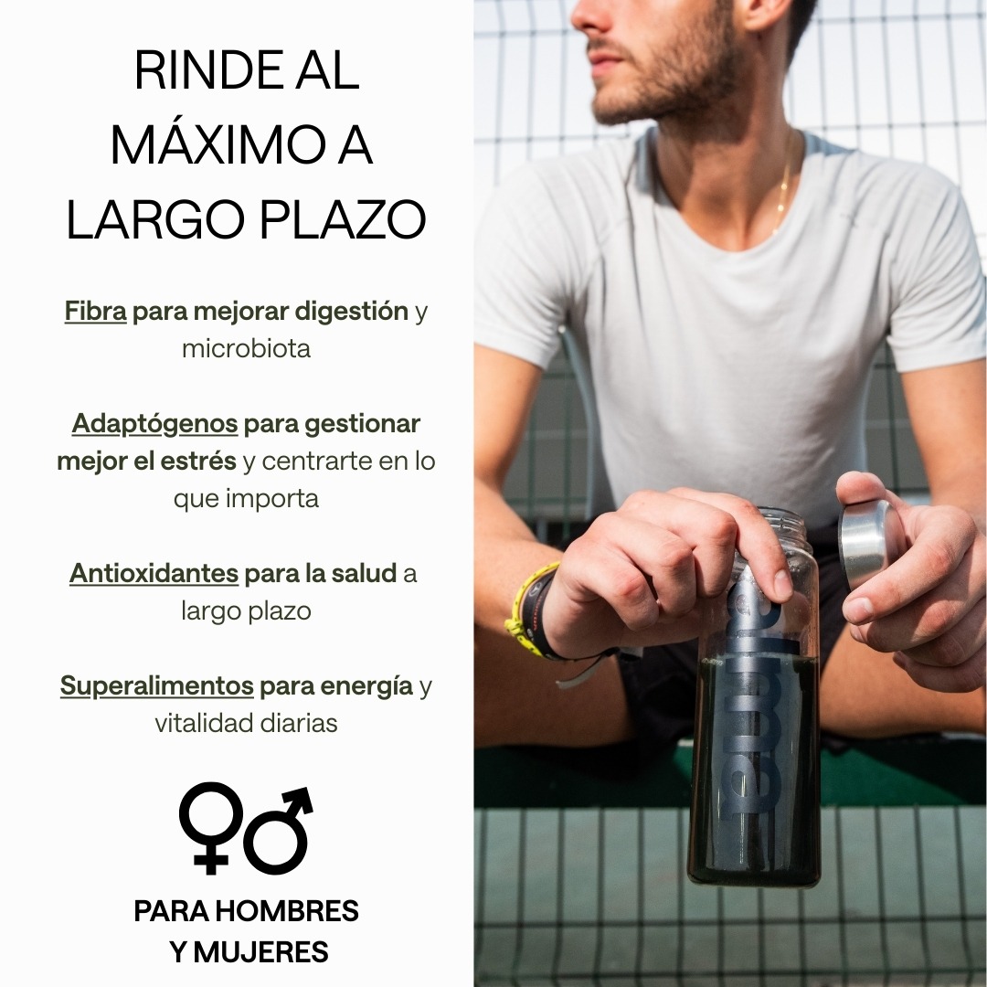 🧠 BIENESTAR Y GESTIÓN DEL ESTRÉS – Un complemento alimenticio con espirulina con adaptógenos como ashwagandha KSM-66®, rhodiola y azafrán, pensados para acompañar el bienestar mental y el rendimiento diario.