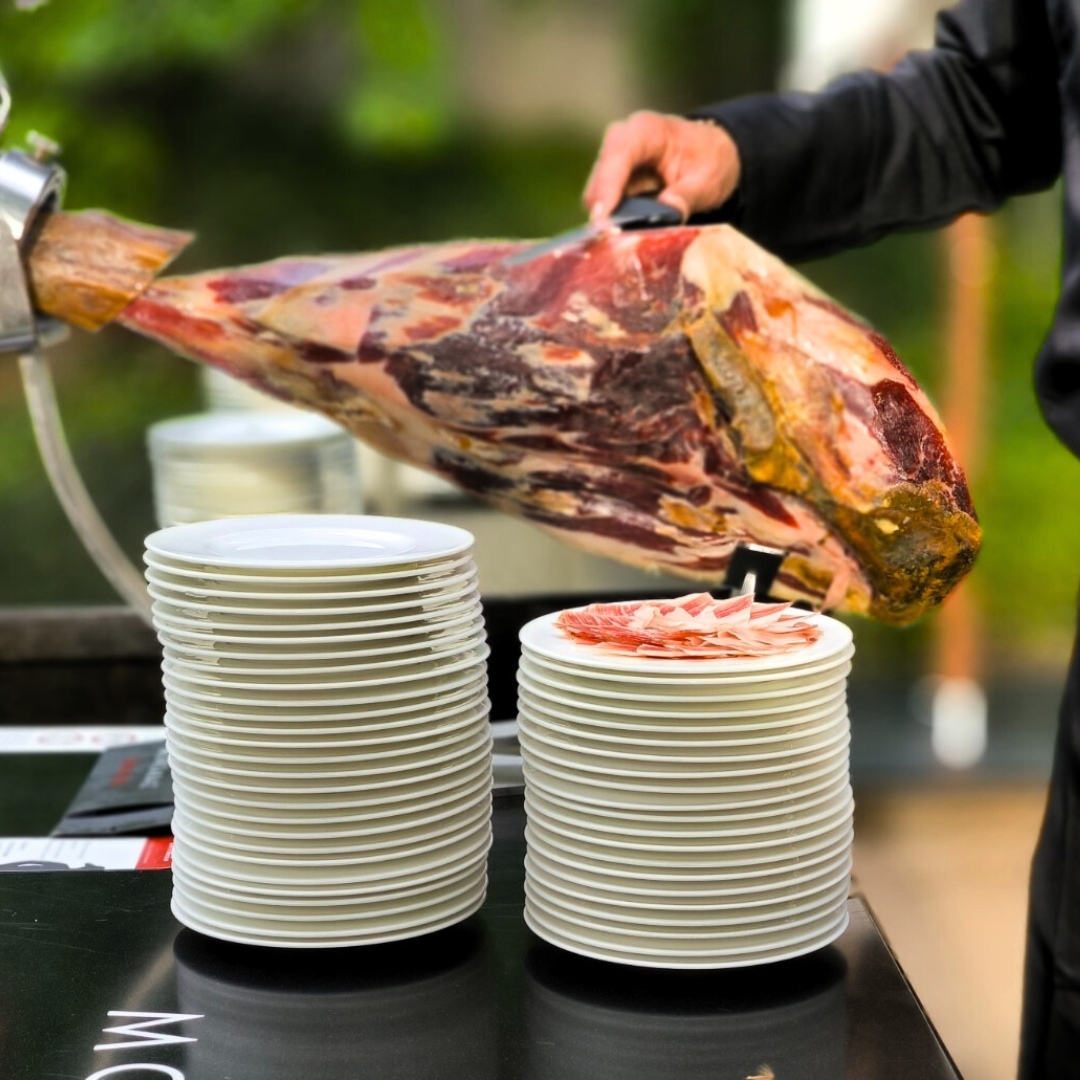 Pack completo con 7 loncheados de 100 gr cada uno, de Jamón de Cebo de Campo 50% Raza Ibérica, curado y de cerdos criados en libertad en Extremadura. 100% natural, sin aditivos.